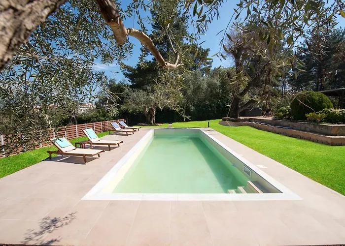 Offering barbecue and a garden for guests' leisure, Spyrelia Villa With Private Pool & Outdoor Hot Tub is situated within 25 minutes' walk of The Venetian Arsenal at Gouvia. Located within 7 km of Theotoky Estate, the 3-bedroom villa provides Wi-Fi and parking.